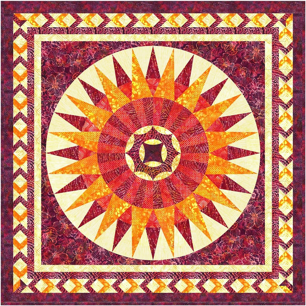 Examples of the sharp points are stars, compasses and other similar patterns. Some of my favorites are my Shining Star Runner and Sun King. These are patterns that would be possible with templates, but so much easier to do with foundation piecing.