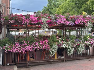 While we at lunch at the Plaza Cafe, I was distracted by a hummingbird darting in and out of the flowers.