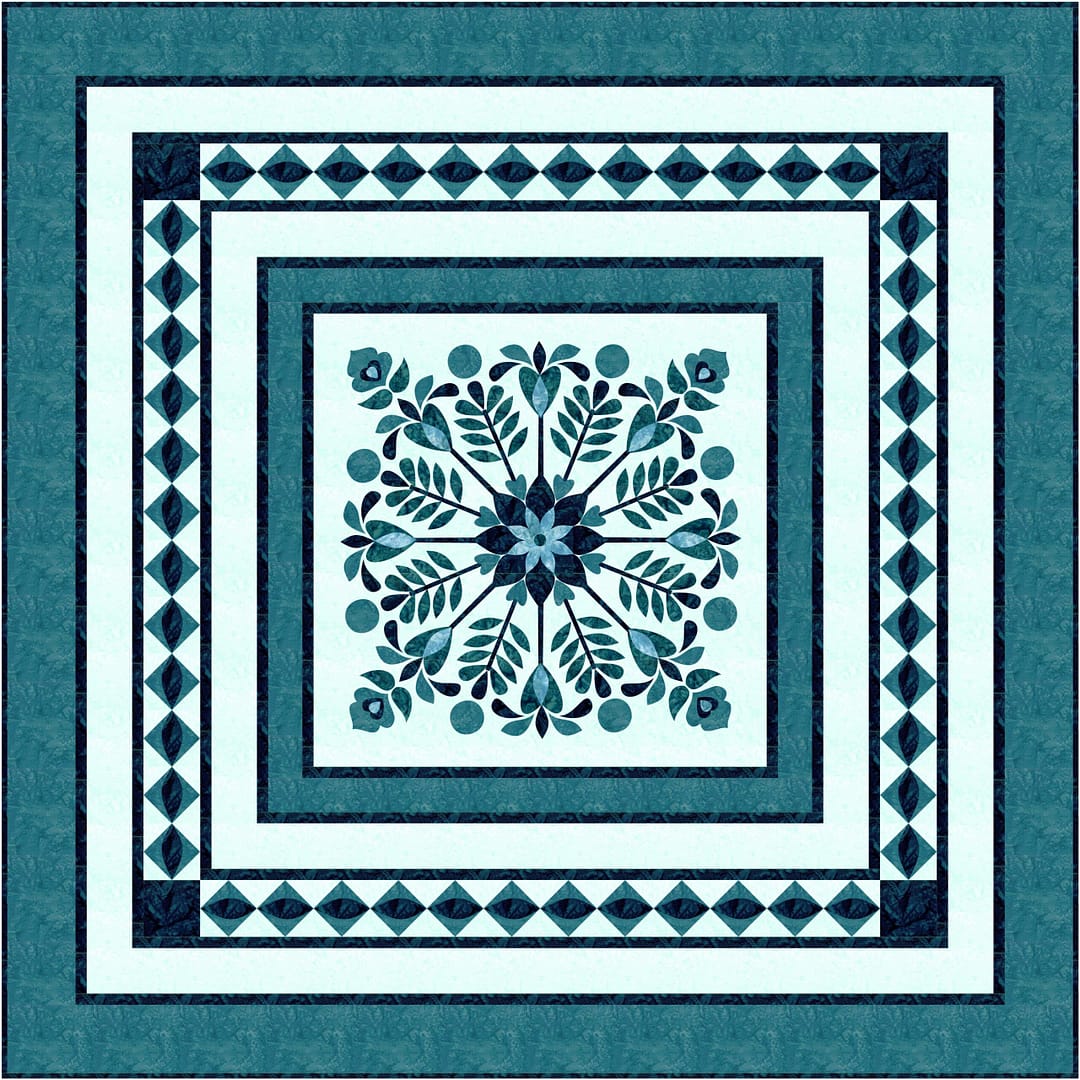 A curated blue fabric bundle designed for the Winter Whispers block series, beginning with Frosted Branches. Each bundle includes 2 yards total: one yard of the lightest fabric for background and breathing space, plus four coordinating blues for contrast and depth.