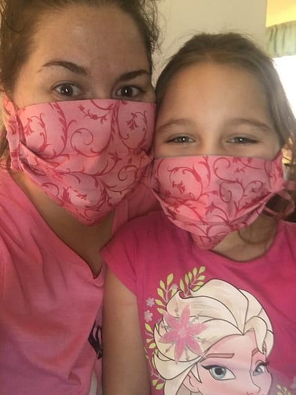 Just as important as the mask materials is how to wear the mask. First and foremost, wear the mask fully over your nose and mouth as demonstrated by my darlings. Do not have the ask tucked under your nose.